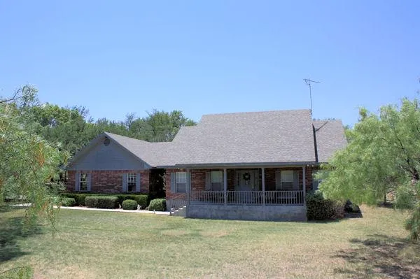 Beautiful Custom Built Brick home on over 30 acres. Split bedroom arrangement and open concept living for kitchen and living room. Beautiful fireplace, high celings,Covered porches on front and back of house. Property has beautiful oak trees, wet weather pond, creek, spring, and incredible views. Great hunting place and feels very secluded. Deer blinds included.