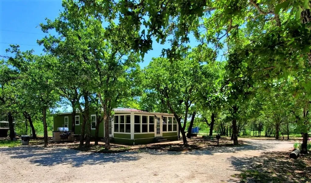 You'll find privacy and peace of mind nestled among the large oaks that surround this rustic and quaint cabin located in the heart of central Texas. The gorgeous stand of oak trees will keep you secluded and provide shade and respite from the summer heat. Sip drinks or have dinner around the firepit with friends and family or enjoy the wide open view from the 12X22 sunroom.
