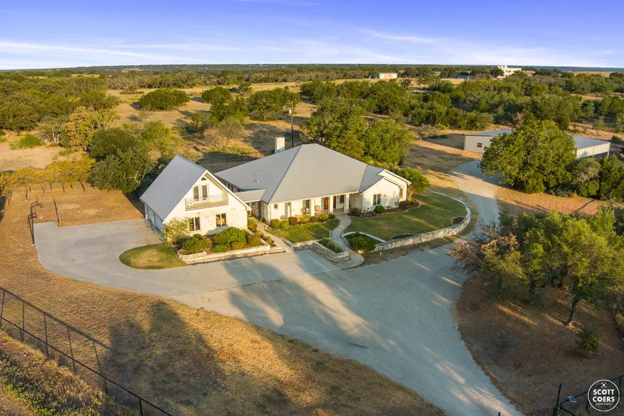 Hunting/Ranching/Recreational!!!Nestled in the middle of 46 acres. This Oak covered acreage and the native coverage makes for perfect habitat for deer and wild game. Or do some Ranching raising cattle or goats. Property has gate entry, gated fenced yard around home, and excellent perimeter fences including Ellwood along highway frontage. Seclude yourself from the rest of the world when you arrive home and enjoy the beautiful Texas sunsets in this tranquil setting. Anderson windows and doors allow home to be bathed in sunlight. Welcome guest! Private guest quarters with en-suite, includes a balcony with a view. Open concept, cathedral ceiling, spacious modern kitchen with island, granite countertops and large walk-in pantry. Breakfast bar and nook will allow for plenty of area for informal gatherings. For special occasions join your guest in the formal dining room. Wood burning fireplace with gas starter, a focal point of living area. Hidden behind French doors is your private office that offers a wall of custom cabinetry. Unsurpassed master with an incredible closet, en-suite with dual shower head and abundant amount of storage. Watch the sunrise from the back porch and outdoors cooking area equipped with gas grill that overlooks a large open deck. 4000 sqft. Shop with roll-up door, storage area offers a large amount of storage, covered RV parking area on slab and additional equipment shed. Gated entry, excellent fences including Ellwood along highway frontage.