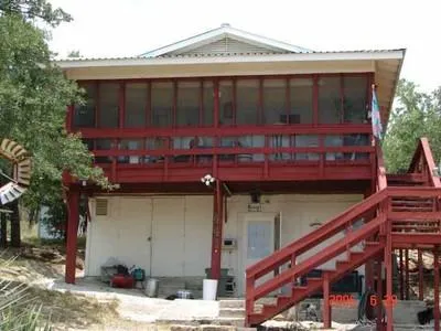 Two story lake home with beautiful view of Lake Brownwood. Patio to relax on and screened in porch across the front upper level. House sits against a hill with large rocks and lots of live oaks in the landscaping surrounding the home. Deer and other wildlife abundant in the area. Use of public pool and boat ramp with pool being just one lot down from the home. Perfect for retirement or a get-a-way for the family.