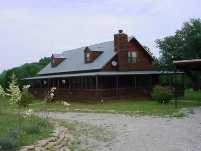 Secluded spacious log home with porches all around the home. Open kitchen and dining area with ceramic tile floors. Cathedral ceilings in the living room with a fireplace. Large master bedroom with a bathroom with a great view of the property. Second bedroom is upstairs with a loft overlooking the living area. 3/4 bath upstairs. Nice sized laundry room with 1/2 bath downstairs.3 Car metal carport with storage. Large tank stocked with fish, and a fishing pier nestled in the oak trees. All appliances, including washer and dryer will convey.