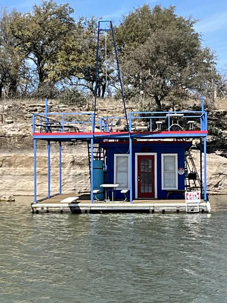 THIS BOAT DOCK ON MCCARTNEY ISLAND IS READY TO GO FOR YOUR LAKE BROWNWOOD FUN!! 24 FT+ OF DEEP WATER FOR YOUR RECREATIONAL USE. BOAT DOCK HAS A NEW TOP DECK TO ENJOY WITH A ROPE SWIM(2022) NEW WALKWAY AND STRONG ARM (2022) NEW WOOD BOTTOM DECK (2022) HAS A BATHROOM TOILET, SINK, AND SHOWER WITH INSTANT HOW WATER HEATER.INSIDE CABIN TRAP DOOR FOR FISHING.