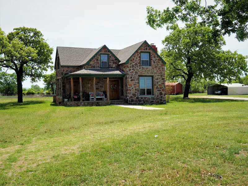 Enjoy the charm of this vintage stone home that has been completely updated inside by a craftsman who masterfully blended the old with the new on 2.5 acres creating a sense of space. A spacious 5 bedroom home with 2 living areas creates a space for a variety of usage. The modern kitchen with granite countertops is a cook's delight. The spacious utility room has room for a freezer or extra refrigerator and storage. An 8'x12' concrete cellar can be a haven from storms or great storage. A two car carport with storage will be built. Home, out buildings and 14.815 acres - $345,000