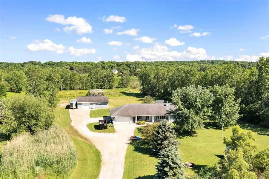 What a rare find! 5.13 Acres (per assessor) This spacious 4 bedroom(2 with full baths) Ranch offers a spacious Kitchen w/maple cabinetry, center island, pantry, 1st floor laundry, and cathedral ceiling in the huge living room with gas log fireplace. A few recent updates include, Furnace & AC, some flooring, counter tops, lighting & more. The attached heated garage is extra deep w/a dividing wall for an additional work/parking space! Step outside and you will be pleased to see the 34x44 additional garage/shop with heat and water. All this conveniently located in Ledgeview!!