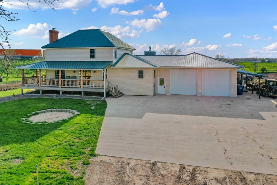 Beautifully updated inside and out turn of the century Farmhouse style home. Spacious kitchen/dining area with abundance of cabinets and counter area Large living room with efficient wood burning fireplace & patio doors to porch. 1st floor laundry, 8x16 mudroom could be converted to bedroom. Walnut wood steps lead to upper level bedrooms and 2nd full bath. 30x40 attached garage with in-floor heat, wired with 220 outlet & 10 ft overhead doors also has a wrap around lean-to for more covered storage. Please see Seller update sheet for all of the improvements/updates. Other than a few cosmetics this is truly a turn key Country property.