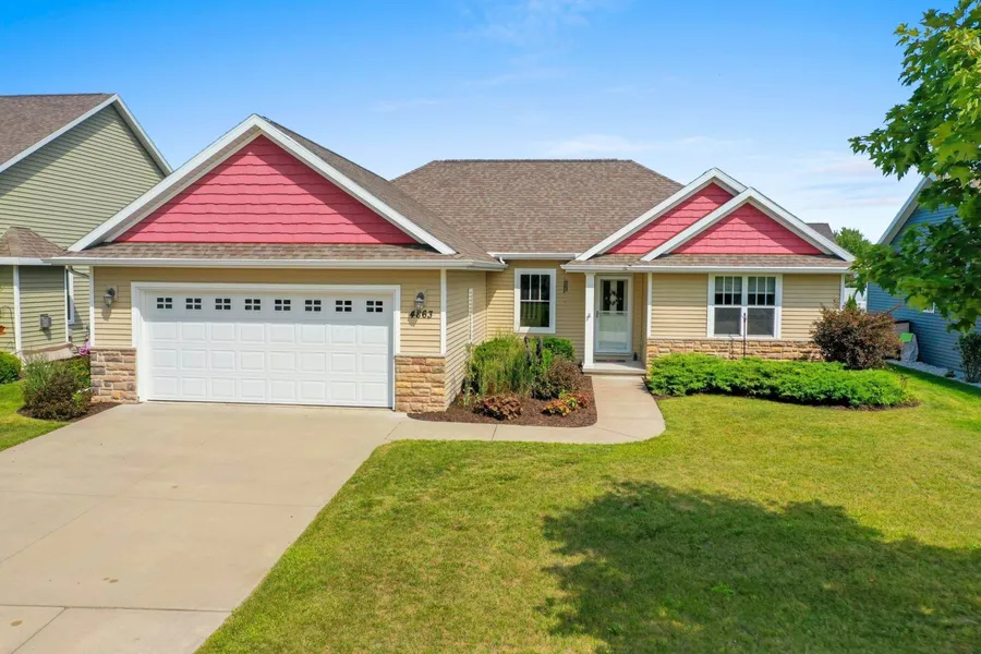 Beautiful Split bedroom floor plan features 3 bd 2 bath 2 stall garage. Kitchen features large island, custom cabinets, stainless steel appliances, & corner pantry. 1st flr laundry includes W&D, LR boasts a gas FP and vaulted ceiling, the dining room leads to the spacious fenced in back yard and patio! Front yard also features a inground sprinkler system. primary bedroom has tray ceiling and attached walk-in closet & full bath.The other side of the house has 2 bedrooms and a second full bath with large linen closet. First floor laundry offers a large closet and includes the washer & dryer.Lower level feature large rec-room, workshop and tons of storage!This being a Focus on Energy certified home makes it an even better value!