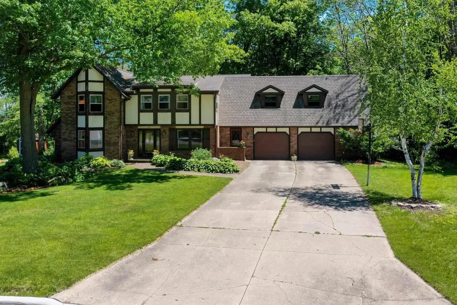 Nestled on a peaceful approx. 1 acre wooded lot in the City of Green Bay. This large English Tudor style home is 5 bedroom, 3.5 bathroom and presents a wonderful opportunity to personalize & renovate according to your taste & preference. Large attached 2.5 stall garage w/an additional workshop area approx. 18x14 that is attached to the garage. Many spacious rooms allow for everyone to have their own space. On the main level, formal dining room, formal living room, family room, 1st floor laundry, 3 seasons room. Generous size bedrooms on the upper level and a partially finished basement with full bathroom and plenty of space for storage. Backyard offers space, privacy and nature. Great opportunity to transform this property into your dream home.