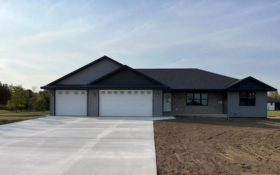 Pictures are very similar to what the completion of the home will look like. The home is almost complete with the estimated completion date of 10/9/24! Step inside, you'll be greeted with a large open kitchen & living area w vaulted ceilings & gas FP. The custom-made cabinets & walk-in pantry w adjustable shelving offer plenty of storage! Primary bedroom offers a tray ceiling, walk-in closet & en-suite bath. 2 other generously sized bedrooms offer lighted closets & ceiling fans. 1st floor laundry offers gas & electric hookups, cabinet space & hanging rod. Basement is stubbed for a bath & includes an egress window, ready for your future plans. This home is complete with the impressive 3.5-stall garage, with an extra deep third stall & an overhead door w direct access to your backyard!