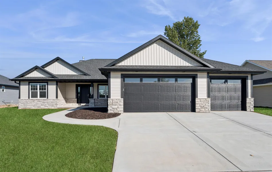 Step into over 2,000 sq ft of beautifully designed living space in this stunning 3 bdrm, 2.5-bath split bdrm ranch. From the inviting stone accents & covered front porch to the spacious, light-filled interior, every detail has been thoughtfully crafted. The open-concept floor plan is ideal for entertaining or relaxing & features: GR w/soaring ceiling & striking FP, kitchen boats tall cabinetry, SS appliances, Quartz counters, center island, tile backsplash & walk-in pantry. Bright DA w/glass door to the patio perfect for indoor-outdoor living, luxurious primary suite w/tray ceiling, spa-like bath w/quartz dual vanity, HUGE tile shower & walk-in closet, FF laundry + bath, lockers, Quartz counters through-out, finished garage w/sink & stub for heater, LL w/2 egress windows & stub for bath.
