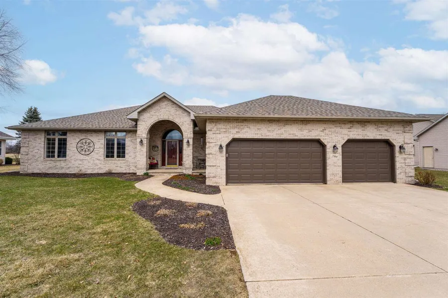 Welcome to this expansive open-concept ranch home! Hardwood floors flow seamlessly through the foyer, living room, and kitchen. The living room features a cozy gas fireplace flanked by custom built-ins, while the adjacent kitchen features a spacious island w/ seating, a pantry, and a dining area. The primary suite offers a walk-in closet and private bath with a jetted tub and separate shower. Two additional bedrooms, a full bath, and a mudroom with laundry space connects to the expansive 3 car garage. The lower level is designed for entertainment, featuring a large family room, game room, flex room, full bath, and two egress windows for abundant natural light. Step outside to a stamped concrete patio and beautifully landscaped yard with no neighbors behind, offering privacy and serenity.