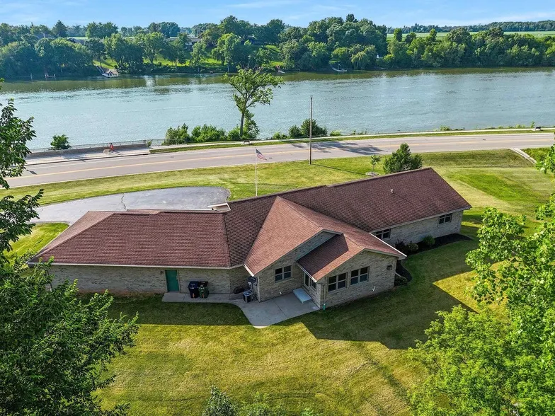 Discover endless possibilities in this 1-owner, all-brick wk-out ranch w/4,200+ sqft nestled on 2.3 scenic acres along the Fox River. Enjoy the perfect blend of privacy & recreation w/wooded backdrop & water access in front plus space to add a dock. Home features 6 spacious bdrms & 6 baths, stunning river views, & natural light throughout. The sunroom offers a fireplace & access to the priv backyard. Mn level includes a generous kitchen w/walk-in pantry, office lvng rm & 3 bdrms 2 w/priv en-suites. Ample storage & wk-in closets throughout. Elevator to wk-out LL offers rec rm, billiards area, 3 bds & full bath. Step outside & enjoy seamless connection to nature & water. Whether you plan to renovate or reimagine, this is your chance to create a waterfront dream. Some photos virtually staged.
