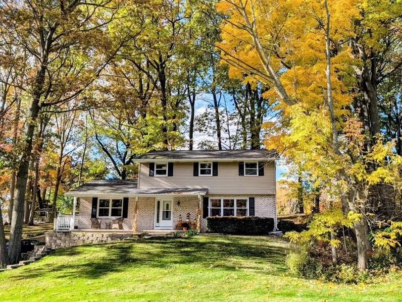 Imagine stepping through the front door and feeling instantly at home! Nestled on nearly half an acre, the backyard unfolds like a peaceful retreat with mature trees and a park-like feel. Freshly painted walls and stylish new light fixtures bring a bright, modern touch to every room. The kitchen and dining areas flow perfectly for everyday living and entertaining, while the inviting family room with beamed ceiling and fireplace, adds warmth and character. Upstairs, the spacious bedrooms and private primary suite create the perfect place to unwind. Step outside and you'll discover your own backyard sanctuary ideal for morning coffee, evening bonfires, or watching wildlife wander by. And with brand new a/c, it's the perfect blend of comfort and style! LL ceiling exposed floor joists.