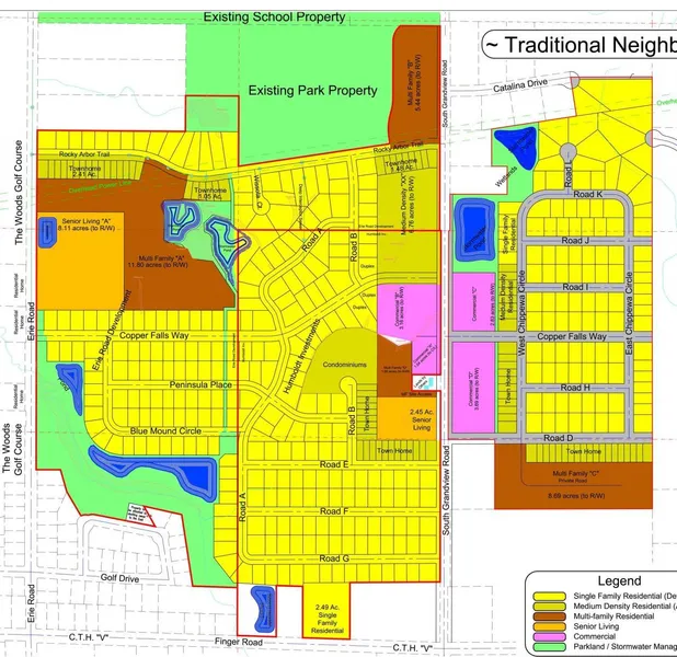 This strategically located property beckons those with a keen eye for potential, offering a meticulously planned development. Located just outside the I43 business park with convenient highway access to both I43 and Hwy 54/57, the PUD framework allows for a diverse range of land uses, fostering a dynamic and integrated community environment. Prospective developers are invited to explore the possibilities, with the flexibility to create a residential haven (110.5 +/- acres), multi-family dwellings (19.5 +/- acres), senior living (19.5 +/- acres) and convenient neighborhood commercial spaces (17 +/- acres). For those interested in this exciting opportunity, the seller is willing to facilitate the division of the property, allowing for a tailored approach to suit individual development