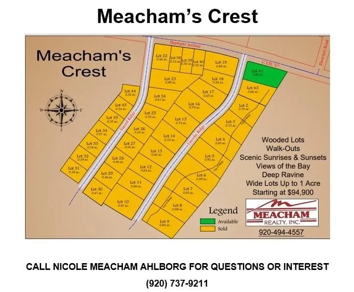 Luxurious Meacham's Crest Subdivision - One of a kind lots on top of Lincoln Ridge with towering views of the bay and beautiful sunrises. These beautiful wide and deep lots are over half an acre and full of mature trees and wildlife. Build your luxury, dream home and nestle into this superb subdivision!