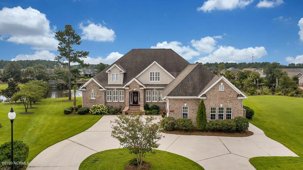 Beautiful, 4 bedroom, 4.5 bath, custom built brick home is located on a .60 acre cul-de-sac & waterfront lot in Waterford of the Carolinas! This stunning home has a circular driveway, courtyard garage and amazing views of the waterways from most rooms in the home. The welcoming front porch leads to the dramatic foyer with a cathedral ceiling and an adjacent formal dining room. The expansive living room features a coffered ceiling and a natural gas fireplace with decorative mantel. Well-planned kitchen has an abundance of cabinetry and counter space, raised bar, pendant lighting, large pantry with barn style door, metal backsplash, under cabinet lighting, all stainless appliances including a 6-burner gas cooktop and a Kohler farmhouse sink. For informal meals there is a cozy breakfast nook with direct access to the outside deck. Master suite includes an illuminated trey ceiling and a private bath with a double sink vanity, jetted tub, walk-in tiled shower, enclosed water closet and a large walk-in closet. Nearby is bedroom #2 that has an en-suite bath. This amazing home also provides the opportunity for an in-law suite featuring a separate large living area, fully equipped kitchen with all appliances and has access to the back deck. (currently this suite is set up as a home gym) The third full bath is connected to the in-law suite and includes a spacious tiled shower. There is a third bedroom connected to the 3rd bath which gives flexibility to being a part of the in-law suite or a separate bedroom. There is also a powder room and nice size laundry room on the first level. Upstairs is a very roomy bonus room including the 4th full bath and 2 separate attic storage areas. Spacious 2 car garage has overhead rack storage plus a platform lift that offers access into the home without needing to utilize the stairs. The backyard oasis features a deck that runs along almost the entire back of the home, a fenced yard and spectacular water views. Extras: wood and tile floors throughout downstairs, ADA compliant, humidity controlled crawl space, new 5 ton Trane HVAC for downstairs, Rainsport water softener & a Rinnai tankless gas water heater. Natural gas is also used for the fireplace, cooktop and dryer. This open floorplan is immaculate, move-in ready and shows like a model! The amenities in this award winning, resort style gated community include a clubhouse, zero entry saltwater pool, fitness center, tennis, pickleball, kayaking, paddle boating, canoeing, fishing, biking and walking trails & more. Historic downtown Wilmington is close by and it is rich with history, entertainment, festivals, concerts and much more. There are so many dining options both inside and out and many are situated on or in view of the Cape Fear River, the Atlantic Ocean or the Intracoastal Waterway. There is a lot of shoreline to be explored at both the New Hanover and Brunswick County beaches. Whether it is surfing, swimming, sunning, shelling or relaxing that you enjoy there is something for everyone at the area's lovely beach towns! Access to I-40 and I-140 are both nearby.