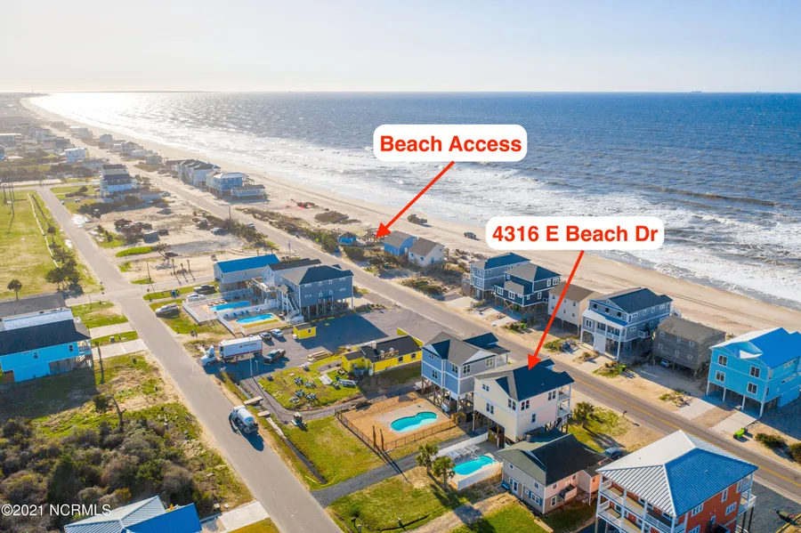 Sparkling ocean views abound in this fully furnished beautiful 4 bedroom, 3 full bathroom beach home on Oak Island. Located on a large .17 acre lot on the second row, this 2,054 square foot home features a private pool, hardwood floors, a spacious kitchen, and an upgraded interior. The large kitchen highlights Craftsman style cabinetry, stainless steel appliances, granite countertops, a pantry, and a breakfast bar overlooking the great room. Breathtaking views of the ocean from the main living areas. Sip on your morning coffee as you watch the dolphins swim by or relax with an afternoon beverage on the large porch overlooking the ocean on this south facing beach. The fourth bedroom and full bathroom complete the second floor. The main floor master suite boasts dual vanities, a tiled shower, and two spacious closets. Two other bedrooms, a full bathroom, and a large laundry room complete the main floor. Home is built with space for a future elevator. Additional features include a pull-through driveway making it easy for boat parking, an enclosed outdoor shower with a built-in bench for rinsing off after a beach day. No HOA. Play in the waves on the beach or relax by your private pool, you have endless possibilities for fun in the sun with this gorgeous beach home! Call today to make this island paradise yours!
