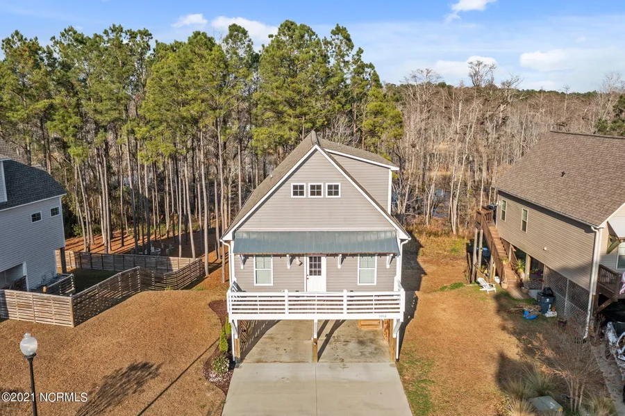 Enjoy privacy and coastal nature in this gorgeous 1,618 square-foot waterfront home in Mill Creek Landing. This 3 bedroom, 2.5 bathroom sits on .24 acres of creek front property along Mill Creek, which leads to the Cape Fear River. Features include an open floor plan, main level master suite, covered parking, and an enclosed storage area. The superior kitchen highlights stainless steel appliances, granite countertops, beautiful subway tile backsplash, and a raised island with bar counters overlooking the living room. Sip on your morning coffee on your upper back deck as you take in the natural wildlife surrounding the creek banks and wooded areas or enjoy an afternoon cookout with family and friends. Your main floor master suite boasts a large walk-in closet with natural light, a walk-in shower, and dual vanities. One half bathroom and laundry room complete the main floor. Upstairs, you'...