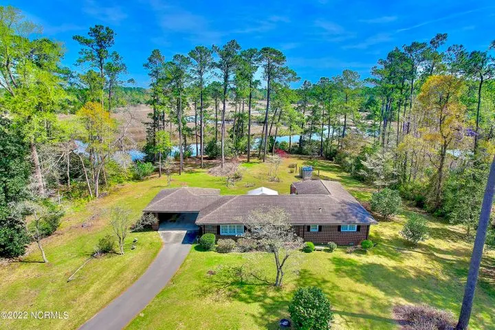 Promoting a true sense of home on 1.5+/- acres on the waterfront! This inviting brick home, with a high elevation, overlooks the Shallotte River and marsh, giving you the most scenic view. Bring your ideas & vision You'll be inspired by the wood walls, the huge living space with a brick fireplace & built-ins, and wood ceilings in most bedrooms. The dining room, kitchen and all the bedrooms are generous in size. Master bedroom has a walk-in closet and large vanity. Light & bright sunroom with easy access to the back yard and an there's an oversized mud/utility room, such a useful feature. The basement is an excellent source for storage. Vinyl windows, Hv/ac new 2018, roof 2012. Downtown is 2 minutes away or a bike ride away, with coffee shops, boutiques, dining, summer markets & concerts, and the new Riverwalk of Shallotte has just been completed. Within 10-20 minutes of 3 popular beache...