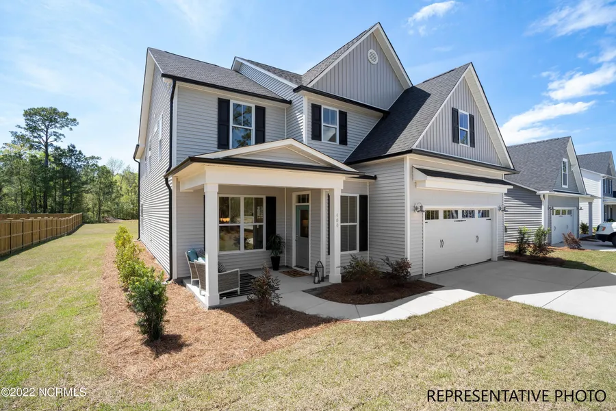 The stunning ''Armstrong'' by Stevens Fine Homes has a floor plan ideal for entertaining, offering 5 bedrooms, 3.5 baths, a sunroom, a 16x10' rear covered porch, finished two-car garage, and over 3,000 square feet for your family to enjoy. A lovely foyer welcomes your guests, while a formal dining room, large great room, and a bright sunroom all surround the kitchen. The kitchen is a home chef's dream with soft-close, shaker-style cabinetry in a timeless white finish accented with oil rubbed bronze hardware, gorgeous ''pure white'' quartz countertops, a gray subway tile backsplash, Moen oil rubbed bronze plumbing fixtures, stainless steel appliances and an oversized, lighted pantry. The 2nd floor primary suite features a trey ceiling, a cozy sitting area & an attached bath with a double vanity with quartz countertops, a walk-in shower, water closet, linen closet & a walk-in closet. Also upstairs, you'll find a guest suite with its own well-appointed private bath. Three additional bedrooms, the last of which makes a perfect media or playroom, a third full bath, & a laundry room complete the second floor. Expertly curated by our in-house designer, this home carries a soothing neutral color palate throughout & is full of designer finishes like luxury vinyl plank flooring & 9' ceilings throughout first floor, quartz counters in kitchen & baths, elevated oil rubbed bronze lighting, Moen ORB plumbing fixtures, 5-inch baseboards and thoughtful trim details, sod & irrigation in front & rear yards, exterior coach & flood lights, & a storage closet in the garage. Currently under construction with an estimated completion date of April, 2023. Located in the sought-after Northern Lights community, only 10 minutes from the Leland shopping district and 15 minutes from downtown Wilmington. Please note that photos shown are of a previous build of the same floor plan. Design finishes & structural options may vary. Completion date is an estimate and subject to change.