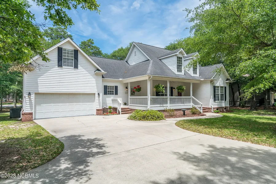 Relax on the inviting covered front porch of this gracious Colonial Style home and hear the waves from the beach! Nestled among the mature trees on the golf course with a pond view, this open-floor plan home has many options for entertaining family and friends. Enjoy the scenery of undulating greens and water from your back yard deck while grilling out, relax in the attached Sunroom, savor a meal prepared in the spacious kitchen or relax in the living room framed by beautiful built-ins. Plantation shutters allow the option of natural light or privacy in the living areas and primary bedroom. The main bedroom and Bonus room are on one side of the house and the 2 bedrooms/ 1 Bathroom on the other. Located approximately 100 yards from the Club House/ Restaurant situated on The Links at Brick Landing and the Intercoastal Waterway also offers views of East end of Ocean Isle Beach. Brick Landin...