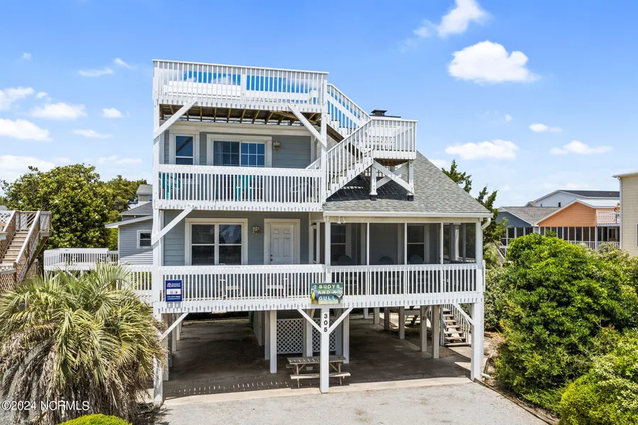 Price has been reduced $50,000 on this beach lovers dream! This 4 bedroom 3 bath home is across the street from the ocean. Amazing views of Sunset Beach, the pier, and most of the island. Each level has a covered porch. The main level also has a screen porch. Do not miss the roof top deck of the home, it has a bench so you can sit and enjoy some of the best views of the island. New walkway to the beach at 4th St and ramp for easy access for bikes at 3rd St. This home has been well cared for. The kitchen has a bar for extra guest seating and is open to the kitchen and family room. Main level has 2 large bedrooms and a bath. Upstairs is primary bedroom with large additional bedroom and additional full bath. A loft area for addition den area with a pull out sofa. Under the home is a storage area with outdoor shower. Roof was replaced in 2018. Main level HVAC replaced in 2018 and the upstair...