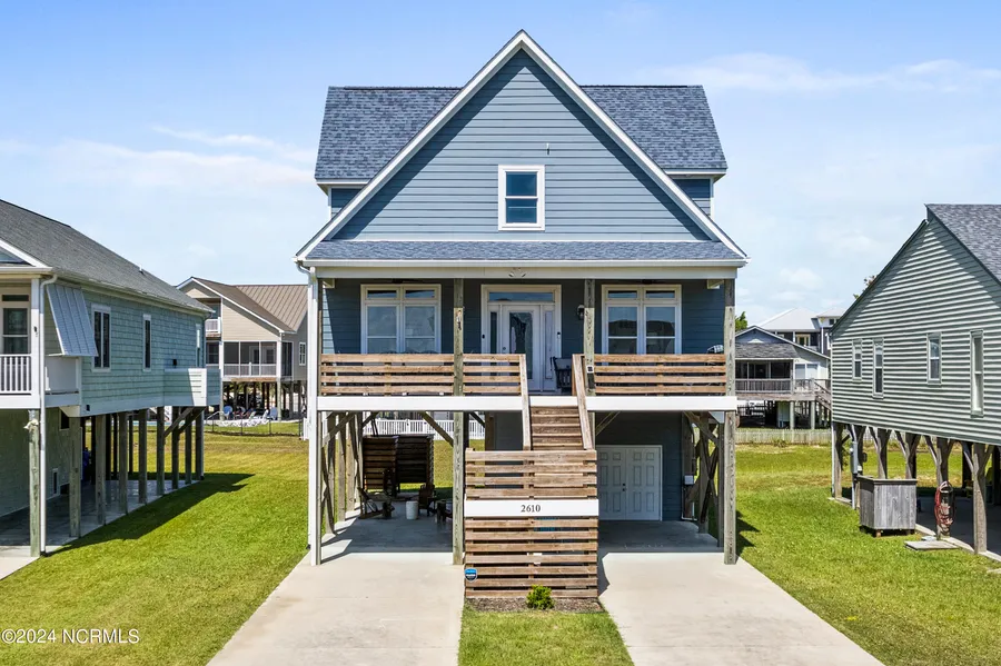 Experience the STUNNING OCEAN VIEWS from the covered front porch of this highly sought-after home on the wildly popular Oak Island. Custom built in 2019, this third row, FULLY FURNISHED home boasts 1,985 sq. ft., 4 BED and 3 1/2 BATHS, along with ample outdoor space ideal for hosting family and friends. 6 Person LSV Binelli GOLF CART INCLUDED! The open floor plan is both bright and airy, adorned with low-maintenance luxury vinyl plank flooring throughout. The spacious kitchen with plenty of white cabinets and stainless steel appliances will delight the whole family. An EXPANSIVE KITCHEN ISLAND, which accommodates eight guests comfortably, serves as an excellent venue for entertaining. Enjoy the ocean views from the comfortable living space, the convenience of a half bath and a handy nook complete with desk and chair. The primary bedroom located on the main level, includes a PRIVATE BALCO...