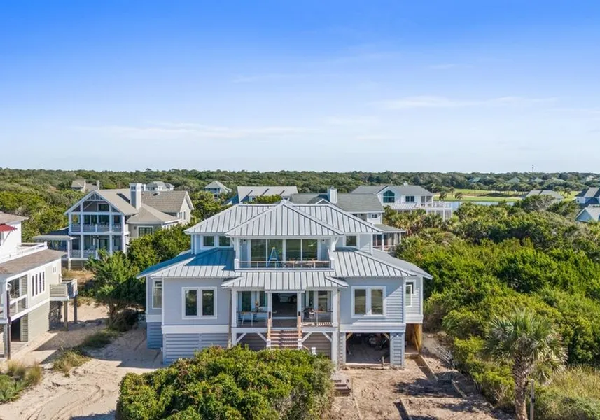 If refined coastal luxury is what you're looking for, look no further. This stunning new construction offers unobstructed ocean views and showcases the finest finishes for the discerning buyer. A standing seam metal roof for timeless durability and style, complemented by an elevator serving all floors are just a couple of the features that set this home apart. Step inside to sophisticated interiors, including floating cabinets and carefully curated designer lighting, along with all of the living spaces you need. Designed for gatherings and relaxation, this home features an additional large gathering room on the first floor, perfect for games and movies. The custom-designed bunkroom with built-in storage adds a playful yet practical touch, ideal for accommodating family and friends. Every detail of this home has been crafted to enhance your time at the beach. A whole house water filtration system with UV sterilization is already in place. A leak detection system with a leak defense valve constantly monitors and automatically shuts off water if a leak is detected so you can have peace of mind when you're not at the beach! Expansive ground floor storage provides room for all of the beach gear and plenty of opportunity for private owner's closets. Sunset views over the Atlantic are the highlight from the top floor living areas and balconies. Bald Head Island Club membership available - inquire with listing agent.