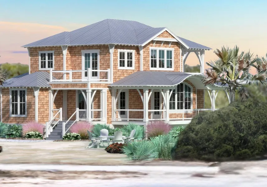 Fantastic opportunity to secure an absolutely stunning home at pre-construction pricing. This 5BR/4.5BA home features classic BHI architecture. Wrapped in rich cedar shake siding and crowned with a standing seam metal roof, the exterior makes a sophisticated statement set against the island's natural backdrop. Thoughtfully designed details like graceful rooflines and arched windows add charm while maximizing natural light. The reverse floorplan takes advantage of protected ocean views and the upper level is truly the heart of the home. An open-concept living space flows out to a spacious porch and a separate balcony just off the kitchen, perfect for watching the sunset with a glass of wine in hand. A wet bar, walk-in pantry and generous storage make this beach house feel like a home. All four bedrooms on the first floor have their own full baths! A flex space offers the perfect kid's hangout or a cozy sitting nook — leading to the added bonus of a charming bunkroom ideal for sleepovers or extra guests. Inside and out, every inch of this home is designed to elevate your island lifestyle. Inquire now for floor plan specifics, club memberships, and the opportunity to personalize this island retreat.