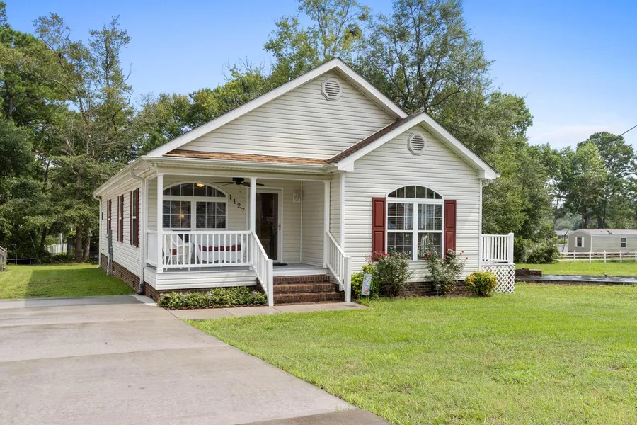 Move-In Ready Slice of Paradise, 10 minutes from the Surf at Sunset Beach. Rarely used 2nd Home, Fully Furnished, Inviting, Raring to Go! With its Open Floor Plan, you'll feel right at home with tasteful wood laminate floors, lots of natural light and a well designed comfortable 20' Living Area. The Kitchen is a chef's delight with its window above the sink and its island bar seating, a versatile dining area, intimate enough for 2 or ready for a family of 8, and a slider leading to the deck for firing up the grill. The Master Bedroom in the rear of the house will not disappoint with its king size bed, walk-in closet and its oversized bathroom with dual sink vanity, walk-in shower & a soaking tub that steals the show. A cozy guest room has access to the hall bath, similar to a ''Jack & Jill''. The 3rd bedroom currently functions as a den with a pull-out bed. The bedrooms are carpeted for maximum comfort. The full size washer & dryer are convenient in a hall closet. Low maintenance vinyl siding with a small yard will allow you to spend hours relaxing on the front porch or to go fishing, golfing or enjoying the pristine shores of multiple beaches. The exterior shed allows you to store your bikes, beach chairs and the riding lawn mower included in the sale. Strong curb appeal with municipal water & sewer, municipal roads and not in a high risk flood plain. Lots of options including investment property as a rental, a 2nd home or a primary home. Within walking distance to Calabash. The friendly neighborhood has a mix of housing from newer homes on stilts to established bungalows to double & single wides. Centralized location with groceries, restaurants, medical & more, all within 10 minutes. If privacy & no HOA is important, if immaculate & well built is vital, if an easy low overhead is top of mind, this property really delivers.