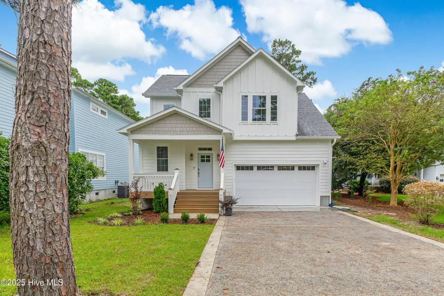Part craftsman bungalow, part coastal retreat, 5160 Minnesota Drive blends timeless style with a floor plan designed for real life-every inch is purposeful, and every detail has been thoughtfully chosen. PRIME LOCATION: Nestled in the sought-after Westport neighborhood at South Harbour Village, you're minutes from Downtown Southport, Oak Island's beaches, Dutchman Creek Park, South Harbour Marina, and waterfront dining-coastal living is right at your doorstep. MAIN LEVEL LIVING: Step through the soaring two-story foyer into a sunlit office or wellness space-no wasted rooms here. The open kitchen and dining area feature acacia engineered hardwood floors, designer tilework, high-end appliances (including an LG Studio Series refrigerator), and a dry bar with wine fridge for effortless entertaining. THE GREAT ROOM: Anchored by a gas log fireplace, the living space is framed by a 10' triple-panel sliding door that opens to a spacious deck with pergola, creating an easy flow for indoor-outdoor living. PRIVATE RETREAT: The first-floor primary suite offers French door access to the deck, a spa-like en suite with a stunning tiled walk-in shower, and a large walk-in closet. UPSTAIRS COMFORT: Three generously sized guest rooms, a versatile loft, and an incredible amount of storage-under the stairs, pull-down attic access in one bedroom, and full walk-in attic access in another. CRAFTSMANSHIP & FINISHES: Built by LBI Construction with Hardi siding, soffits, and trim for durability, Trex decking for low maintenance, and custom built-up cottage trim for character. Designer lighting, upscale tile, and engineered hardwoods set this home apart from standard builder-grade offerings. With only a few building sites remaining in Westport, this move-in ready, custom-quality home is your opportunity to skip the wait and start living your coastal dream now.