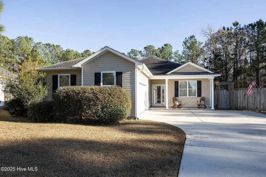 Welcome to this charming 3-bedroom, 2-bathroom home on a cul-de-sac, in the desirable Arbors at Westgate community of Leland. This thoughtfully maintained home offers a bright and open floor plan designed for comfort and functionality. The spacious living area flows into a well-appointed kitchen with abundant cabinetry and a breakfast bar. The private primary suite includes a walk-in closet and en-suite bath. Two additional bedrooms provide space for family, guests, or a home office. You can enjoy southern living at its finest in the expansive backyard that boasts almost 3/4 of an acre in the center of Leland. Community amenities include a pool and clubhouse. Ideally located near shopping, dining, golf, downtown Wilmington, and area beaches. This home combines modern features, low-maintenance living, along with beautiful curb appeal.