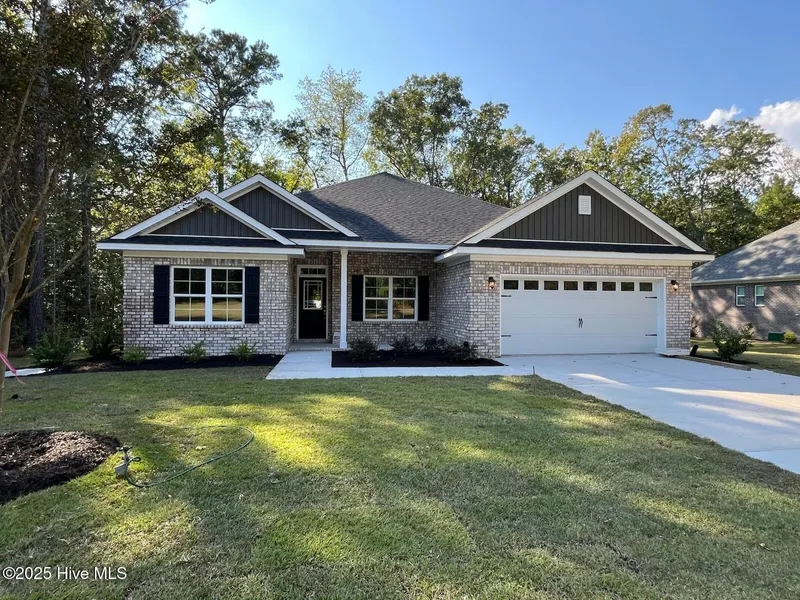 New Construction in Palmetto Creek! With its 4 and 2 baths, this home provides ample room for families to comfortably live. The open-concept layout seamlessly connects the main living areas, including the kitchen, dining area, and family room and is lined with crown Moulding and wainscoting trim. The well-appointed kitchen features smudge proof stainless steel appliances, quartz countertops, a center island, and plenty of counter and storage space. The master suite is located in the back of the home and features tray ceilings and LED recessed lighting. The ensuite bathroom is tiled, has a large walk-in closet, a quartz double vanity, soaking tub and a tiled walk-in shower. The additional 3 bedrooms are generously sized and are well appointed to be fit for living or be a designated home office or hobby space. Additionally, the 2100 floor plan includes a tiled laundry room next off of the spacious two car garage. Palmetto Creek's alluring location puts you only a few miles from Oak Island and Holden Beach. The gated community includes a clubhouse, a resort-style pool, tennis courts, putting greens, a fitness center, and walking trails. To top it off, Palmetto Creek offers a canoe and kayak launch. Coastal living at its most convenient!