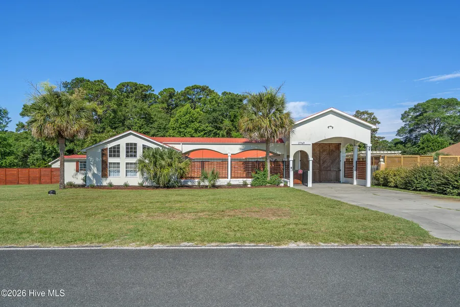 A Luxury Coastal Mediterranean Retreat Just Minutes from the Shore Discover a rare blend of coastal elegance and Mediterranean charm in this private villa-style courtyard home, designed for those who appreciate refined living with a relaxed beachside spirit. Tucked behind a serene, gated entry, the residence unfolds around a sun-drenched courtyard that feels like your own boutique resort. The artisan patio sets the tone with timeless stonework and a true wood-fired pizza oven perfect for hosting intimate dinners or lingering with friends as the ocean breeze drifts in. Inside the main home, two beautifully appointed bedrooms and two full baths offer comfort and sophistication. The primary suite is a peaceful sanctuary, complete with a versatile flex room ideal for a private lounge, fitness space, or creative studio. The detached guest casita elevates the property even further. With its own entrance, full kitchen, and full bath, it provides luxurious privacy for guests, extended stays, or a high-end remote-work retreat. A second detached structure overlooking the courtyard adds even more flexibility a chic office, an artist's loft, or curated storage. The oversized garage is built for coastal living, offering generous space for boats, RVs, and all your beach and boating essentials, with built-in shelving to keep everything beautifully organized. Wrapped in lush landscaping and warm Mediterranean architecture, this home is a tranquil escape designed for effortless indoor-outdoor living. Add a pool to the courtyard and the entire property transforms into a showstopping coastal oasis. All of this is just a quick 5-minute drive from the pristine sands of Holden Beach and the Intracoastal Waterway's public boat ramp ideal for morning beach walks, sunset cruises, and spontaneous days on the water. If you're seeking a one-of-a-kind luxury coastal property with character, privacy, and unforgettable