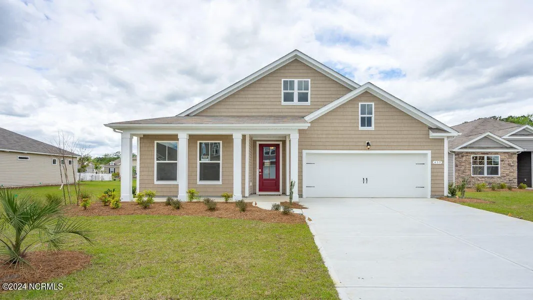 Welcome Brunswick Plantation! A gated community with 24 hours security, 27 hole Championship Golf Course on site (membership not included), 11,000 sq. ft. amenity center with meeting and activity rooms, fitness center, two pools (salted indoor and outdoor), indoor catering kitchen, outdoor grilling area, walk to restaurants onsite, multiple tennis and pickle ball courts. Close to shopping and dining in Calabash and the Myrtle Beach area in SC. You don't want to miss out on this home! The popular Dover plan is a masterfully designed single level home with a great open concept kitchen, living, and dining area. Kitchen features include a corner walk in pantry, stainless steel appliances, a tile backsplash, granite countertops, and an island with breakfast bar. Located at the back of the home, the private owner's suite offers a large walk-in closet, dual vanity, and a 5' shower. Access to the rear screened porch just off the dining area creates a wonderful outdoor space to relax and unwind. At the front of the house are two secondary bedrooms and a flex room. The versatile flex room with french doors can be used as an office, formal dining room or playroom. 2'' faux wood blinds on all standard windows. This is America's Smart Home! Each of our homes comes with an industry leading smart home technology package that will allow you to control the thermostat, front door light and lock, and video doorbell from your smartphone. *Photos are of a similar Dover home. (Home and community information, including pricing, included features, terms, availability and amenities, are subject to change prior to sale at any time without notice or obligation. Square footages are approximate. Pictures, photographs, colors, features, and sizes are for illustration purposes only and will vary from the homes as built. Equal housing opportunity builder.)