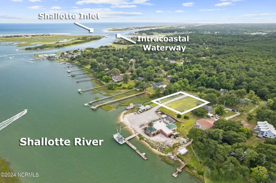 PERFECT OPPORTUNITY to build your dream home or subdivide this 1 acre cleared lot, high in elevation, overlooking the Shallotte River. The Shallotte River, Intracoastal Waterway, inlet, Sasspan Creek and the ocean are all within easy reach for some of the best boating & fishing around. This property shares a 60 ft wide road easement that gives access directly to the river. The portion of land that is on the other side is zoned commercial and has sewer hookup running to the property in the back (Lloyd's Oyster House).