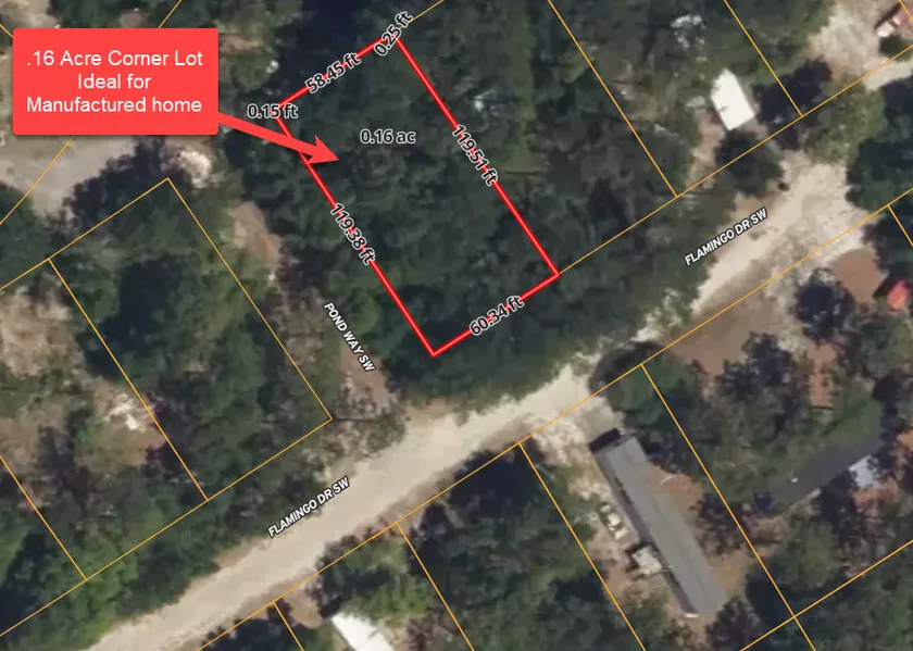 This 0.16-acre (approx. 7,096 sq ft) corner lot in Shallotte, Brunswick County, NC offers a solid small-parcel opportunity for an installer, investor, or builder familiar with manufactured housing and small infill-style projects. The corner configuration and frontage on two streets (Flamingo Dr SW and Pond Way) can provide added flexibility for placement and access once the site is prepared.