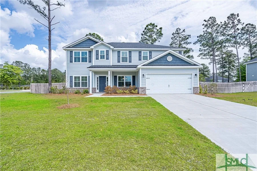 This spacious 5 bedroom, 3 bath home, just two years old, is located on a corner lot. The open floor plan includes a formal dining room, a living room with a fireplace, and two bedrooms on the first floor. From the dining area, you can enjoy a view of the large, screened porch and fenced backyard. The kitchen boasts a tile backsplash, an island with a sink, and an oversized pantry. Upstairs you will find the primary suite, a loft, and two additional guest bedrooms. The loft area is perfect for a kid's playroom, workout area, or movie room. Woodland Trail amenities include a pool, pavilion, fishing lagoon, and recreational storage area.