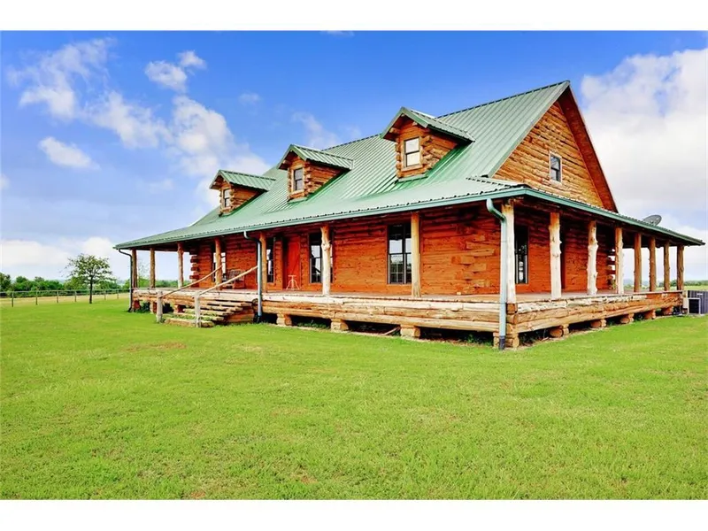 Beautiful log home on 110 acres with 8' wrap around porch and 3-car garage. Fenced and cross fenced. 12-acre lake plus pond. Pipe fencing around home. Landscaped. Relax on the porch and watch the cattle graze.