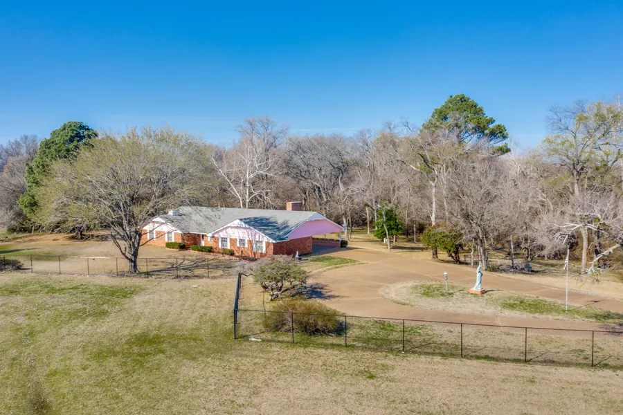 What a rare find!! This gorgeous, well-maintained home has only had two owners since its construction in 1960 and is in fabulous condition. Recent improvements include new vinyl flooring and a new metal fence with a locking electric gate. The house itself has a wide-open living space and a kitchen buffet that would be perfect for entertaining! There is storage galore built into the home (including a large cedar closet!), as well as a brick storage building out back and the home's signature pink barn! It is a working barn with hay loft and outdoor stalls that would be perfect for a small entertainment venue, a retail space, or a she-shed/man-cave! It sits on ten beautifully wooded acres with the highway frontage making it very easily accessible and located just across the highway from Crystal Creek Winery and less than 1 mile to Leavenworth Trail, making it a quick twenty minutes to the Texas border while bypassing the highway traffic. Imagine yourself sitting on the back patio amid the fully mature trees, watching a natural creek winding through your lovely woods. The home is fully furnished with exquisite collector's items and seller is willing to sell all pieces upon request. There is even a fully functional RV hookup just off the circle drive for easy guest access. Don't miss your chance to take a look at this vintage treasure!