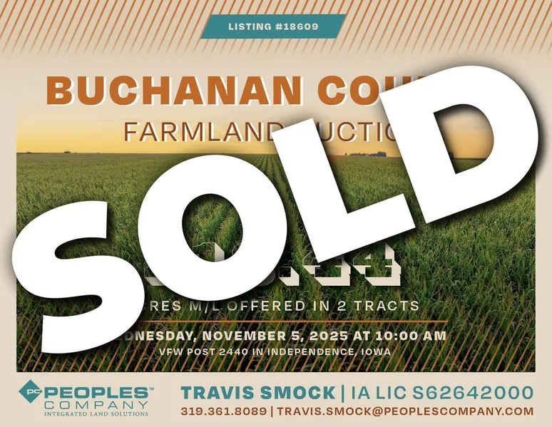 Peoples Company is pleased to represent the Larry L. Rasmussen Trust in the sale of 213.44 acres m/l located just northeast of Independence in Buchanan County, Iowa! A farmland auction will be held on Wednesday, November 5, at 10:00 AM at the VFW Post 2440 in Independence, Iowa. The land will be offered in two individual tracts using the Buyer's Choice sale method, where the high bidder will be able to choose either or both tracts after the bidding. This land will be sold with NO RESERVE, and all of the proceeds of this sale will be generously gifted to local non-profit organizations.