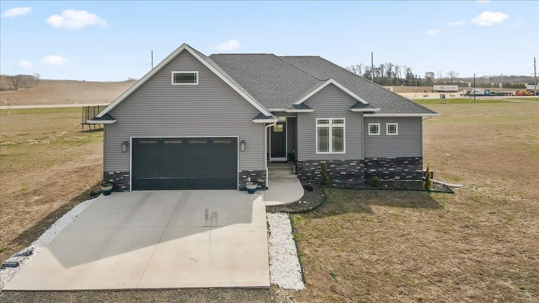 Beautiful Modern Home on 2+ Acres The Perfect Blend of Space & Style Welcome home to this newly built modern gem nestled on over 2 acres, just minutes from towngiving you the best of both worlds: peaceful country living with convenient access to everything you need. Step inside to an open and airy layout designed for comfort and connection. The spacious living room flows effortlessly into a stunning gourmet kitchen featuring a walk-in pantry, making it perfect for entertaining or quiet nights at home. Just off the kitchen, youll find a practical first-floor laundry room and a generous mudroom with easy access to the garage. On the main floor, two large bedrooms each offer walk-in closets, including one with a private en-suite bath. A second full bathroom adds even more convenience. The lower level opens up to a cozy family room, a third bedroom, and another full bathideal for guests, teens, or in-laws. Upstairs, a flexible bonus room can be anything you imagine: a home office, playroom, craft space, or non-conforming fourth bedroom. This is a home that offers room to grow, inside and out. Don't miss your chance to make it yoursschedule a tour today!