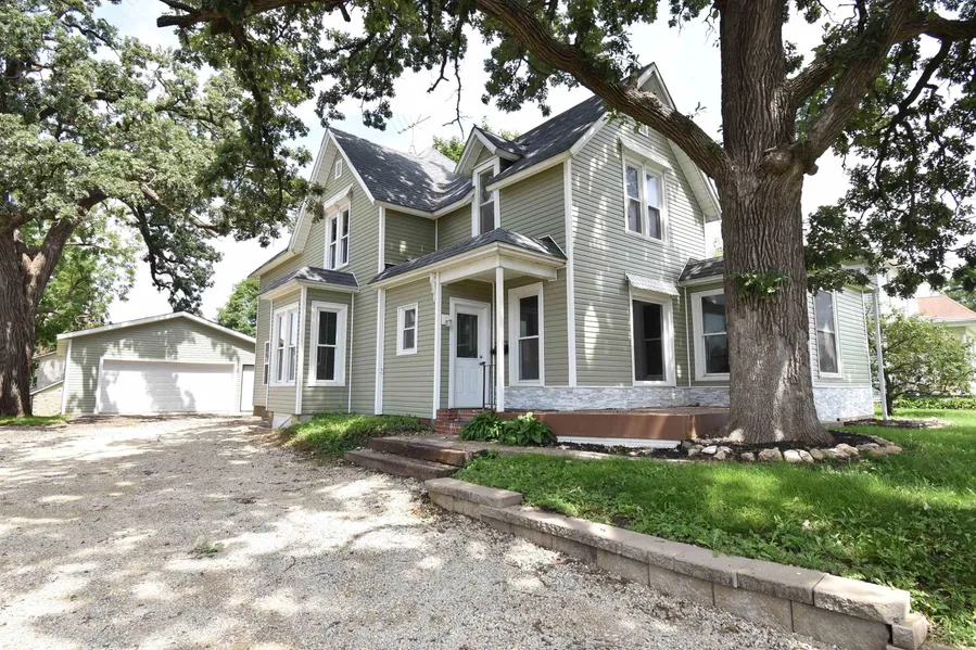Complete remodel from top to bottom. The main floor features a welcoming living room with semi-open staircase, dining room, and a bright kitchen with breakfast bar and walk-in pantry. You'll also find the primary bedroom with a stylish 3/4 bath, and a convenient half bath with laundry on this level. Upstairs offers three additional bedrooms and 1-1/2 baths, providing plenty of space for family or guests. Gorgeous hardwood floors add warmth and character. A 2-stall detached garage offers extra storage or parking, and the location is hard to beat-just steps from the library and a short walk to downtown shops and restaurants. Move-in ready and full of charm, this home is one you don't want to miss!
