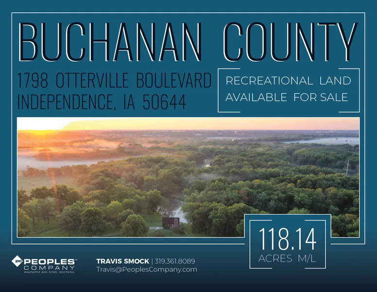 Incredibly unique Buchanan County recreational land available! This hard to find 118.14 Acre M/L property is located in a secluded area, yet still within close proximity to town. This exclusive land tract offers both a beautiful river front acreage and excellent hunting. The 1976 cabin on the property is 1,166 square ft. featuring 2 bedrooms, 1-3/4 bathrooms, and a masonry fireplace. The partially finished basement includes a one car garage. The building site is serviced by a new well that was installed in the fall of 2018 and also features a 40 ft. by 50 ft. steel utility shed that was built in 1978. One of the most intriguing characteristics of the property is its quarter mile of river frontage which provides amazing scenic views as well as a multitude of recreational activities such as hunting, fishing, kayaking, and boating. The location along a back channel of the Wapsipinicon River creates an optimal fishing spot. Hunting opportunities on this property include multiple types of wildlife such as turkey, pheasant, whitetail deer, and waterfowl and could be improved with numerous potential food plot locations. There is a WRP Easement in place on 106.49 Acres of this property which restrict row-crop and other activities. Contact Agent for details. The farm, which is located just northwest of Independence in Section 29 of Washington Township, has access from Otterville Boulevard. An additional 33.3 Acres M/L of timber and main channel riverfront land adjacent to this property is also available. Contact Agent for details