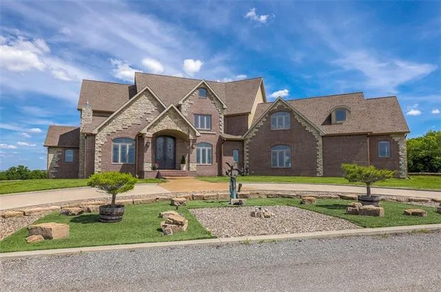 Magnificent brick & stone custom estate home located on 40+/- acres. Over 11,000 square feet of luxury living. Not a detail missed, high-end finishes complete with a commercial quality building. Expansive Master suite boasts a sitting room & luxurious master bath. The lower level offers a theater room, tons of living space & a custom guest suite. 2nd story offers 4 large bedrooms & rec room over garage. Property is completely self-sustaining equipped with solar energy, backup generator& commercial grade independent pressurized water tank. Outbuilding/barn just under 10,000 square feet and offers a regulation pickleball court, safe room, loading room, and custom horse stalls!! The overall size of the outbuilding is 162x50, 125x50 is the main area, horse stalls 25x50, Too much to list!! Must see in person! To GPS this property, enter 10700 MO-T Easton Missouri