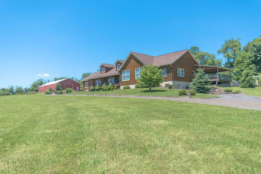 Life in the country has never been more appealing with 47.82 peaceful acres and an extraordinary log home. Distanced from the road, the setting is bordered by preserved land and is very private, yet destinations in Bucks County and the Lehigh Valley are easily reached. A charming covered porch entry leads to an open floor plan with oak floors, abundant windows, and soaring ceiling heights. The main floor encompasses a great room with floor-to-ceiling stone fireplace, dining and kitchen areas with granite countertops, island, and stainless appliances, and a private office with built-in desks and bookshelves. Two bedrooms on this level include a master bedroom suite with jetted tub, walk-in closet and dual vanities. A loft area offers a full bath and bedroom, and the lower level with separate entrance for guests or in-laws has a full bath, pantry and large recreation room. Exceptionally ma...
