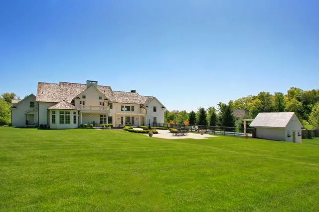 Caressed by elegant European gardens and terraces, this sensational fieldstone home, a combination of Old World architecture and modern convenience, is dramatic and awesome in its attention to detail. A grand hallway entrance with elegant staircase is flanked to the left by a sensational two story light and sunny living room. A Rumford fireplace, accented by a handsome European cast stone ornamental surround, adorns the living room, and long French doors open to the verandas. A formal dining room, to the right, is perfect for elegant dinner parties. The welcoming kitchen, with painted and glazed cherrywood cabinetry, nickel hardware, commercial grade appliances, granite counters and large center island has professional working spaces for the most demanding of chefs. A second dining room, with cathedral ceiling, is perfect for country dining and enjoys beautiful views to the terraced gardens. The hearth room, with fieldstone fireplace, is fun for quiet family evenings. The beautiful finished basement with full custom bar, pool bath and dressing room, also has a billiards room, tavern room with media area, professional gym and second laundry. The bedroom suites are absolutely stunning and have lovely views of the rolling lawns. Bluestone terraces accent the striking swimming pool with summer kitchen. A truly magnificent property!