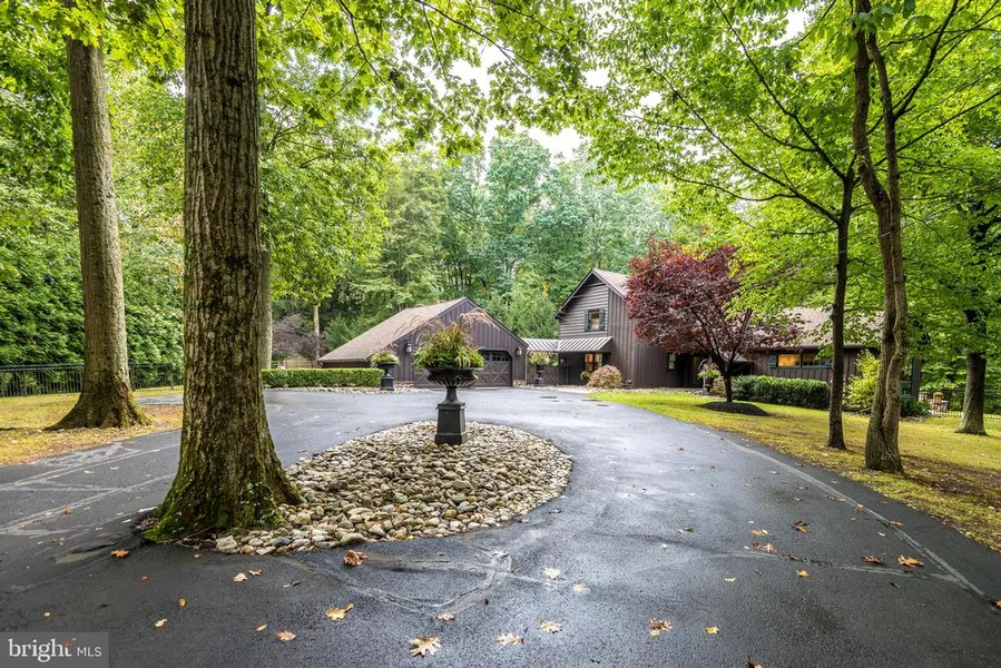 A long private road winds up a hilltop to this tastefully renovated home in Buckingham Twp. This custom built 3,200 sq.ft. residence features vintage timbers and rustic elements that blend perfectly with the natural surroundings. Two stone terraces and an outside fireplace make wonderful outdoor living areas. Inside, a soaring ceiling and windows to scale make the living room a great place to entertain. A massive stone wood burning fireplace anchors the spacious, open layout of the dining room, family room, and breakfast area. Windows line the walls with beautiful views of the wooded hillside setting. The kitchen features a pantry, plenty of cabinets and granite countertops including a center island with seating. Stainless steel appliances include double wall ovens, gas cooktop, and under counter beverage cooler. A powder room is conveniently located on the main level. Upstairs, the main bedroom is generously sized and boasts a vaulted ceiling and its own bathroom. Two additional bedrooms are nicely sized, have ample closet space and share the hall bathroom. In addition to the partially finished basement, an oversized detached 2-car garage provides plenty of extra space for storage. Seller is installing a brand new septic system, and a 1-Year Buyer's Home Warranty is included for extra peace of mind! There is a whole house generator, too. Located in the award-winning Central Bucks School District, just down the hill to Peddler's Village for great shopping, dining and cultural events. Or head 4 miles East or West to arrive in one of the historic towns of New Hope or Doylestown. Easy access to major commuter routes. Make your appointment today and start enjoying secluded, country living on this 2.35 acre property in the treetops.