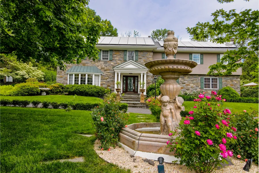 Une Bonne Vie is an Exquisite Bucks County oasis on over three gated park-like acres. The charming foyer leads to an elegant living room and spacious, airy Great Room. Multiple French doors lead to a bluestone courtyard. The convivial Chef's kitchen is truly the heart of the home with timeless hand-crafted Rutt custom cabinetry and Shivakashi granite, new Gagganeu ovens and Bosch coffee-maker, as well as Viking, Asko and Subzero appliances. Completing the first floor are a well-appointed library, Sumptuous formal dining room with wine storage, and cozy family room leading to a second bluestone patio with magnificient views. The exquisite Main Bedroom wing hosts a bedroom sanctuary, sumptuous bath w/ steam shower, dressing room and master parlor/workout room. Three bedrooms and a bath complete the second floor. Private newly-upgraded, custom pool. Attached two-car garage also houses Tesla chargers powered by the houses extremely efficient solar electric system . Sell electric back to the electric company. Carriage house has 3-bay garage and finished air-conditioned loft space above. Enjoy this Impeccable turn-key property. Walk to the Delaware River and canal. Easy access to New Hope, Philadelphia, Princeton & New York Trains.