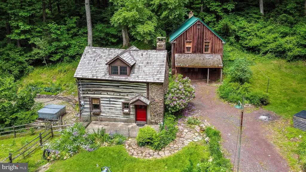 A very unique opportunity to own a log home built in 1727 nestled in the woods off a private lane on over 10 acres with several outbuildings and barns. The home has a main living area with exposed beams and a walk-in fireplace. Just off that space is a charming eat-in kitchen with plenty of cabinets and a rear entrance. Upstairs are two rooms (one is a walk-thru) and a full bathroom. The walk-out basement has all the mechanicals, laundry, and storage area. Next to the house is an accessory building with a full heated 2nd-floor studio space that would be perfect for a large office, game room, artist studio, or exercise studio. Additional buildings include a pole building used as a garage and two barns that are on the part of the property that sits across the private lane that was used for horses and a workshop. This unique property has additional frontage along Indian Way and does have the possibility of subdivision. Enjoy this beautiful serene setting while lounging in your hot tub or sipping wine on the patio. Away from it all but minutes away from Nockamixon State Park, Delaware River and Canal and all the quaint towns and eateries that Bucks County has to offer. This is a perfect full-time residence or weekend getaway. Come see for yourself.