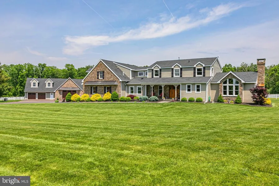 Pandora Stables, a private farm and verdant haven for horses and those who demand only the best. Situated on a scenic country road in Plumstead township, its long tree lined allee cuts a swath through lush green lawns worthy of a high end country club and arrives at the entry of an exquisite compound. The main residence whose keynotes are rustic, casual elegance was designed to be welcoming yet provide space for entertainment on a grand scale and offers bespoke comfort. An open kitchen with professional appliances sprawls and is integrated with a great room with massive window walls overlooking pastures and mature tree line and has a wet bar and multiple television screens...there is no better sports bar than right here at home. A dining area sits midway between this wing and massive living room with lodge style stone floor to ceiling fireplace and continuated walls of glass. The second floor holds an open sitting room, a main bedroom suite, soft and serene in diffused light, enjoying a bath with the essence of a rainforest, highlighting organic materials. Down the hall are two other bedrooms each with en suite bath. Let's talk about the farm starting from the ground up....no expense was spared in its underground drainage system (including all paddocks, riding ring, 2 swales and a water basin). The larger barn has 8 12x12 stalls, large tack room, 12x12 wash stall. wash up room with deep sink and hot water heater, feed room, concrete walkways and 3 dry paddocks. The entire barn is insulated, hay loft is wired, insulated, framed and prepped for another apartment). An additional barn is heated and has 4 13x13 stalls (1 with a drain), a 16x16 dry outdoor paddock, large tack room and storage area for feed/hay, roll up weather tight garage doors, half wood barn doors and a full monitored fire system. A 100x200 outdoor riding ring with rubber and sand footing has a storage shed for jumps and 8 large LED lights. a 16x16 storage shed and a sawdust shed building and many other features make this a turn-key facility. The carriage house offers garage parking for at least 7 more vehicles on porcelain tile floors, a car lift, a 12x25' loft with a wet bar and TV area and workshop; the ultimate "man cave". Its second floor served by a separate entrance and electric meter is an apartment offering 2 bedrooms, kitchen, full bath and laundry. Presently, boarders in 8 of the stalls bring in approximately $62,000 annually. (low boarder fee of up to $650 per month, some do barn chores, easily $800 market rate). The current owners use 4 for their own horses. With all the stalls to be rented out, yearly income from all 12 the potential income could be $115,000. The Carriage house apartment brings in $19,200 plus help with some farm chores from its tenant. Pristine, brilliantly thought out and beloved by all who know it, Pandora Stables is tricked out, jacked up and a pristine equestrian dream. PLEASE CHECK OUT THE DRONE VIDEO AVAILABLE IN LINKS ABOVE IMAGES.